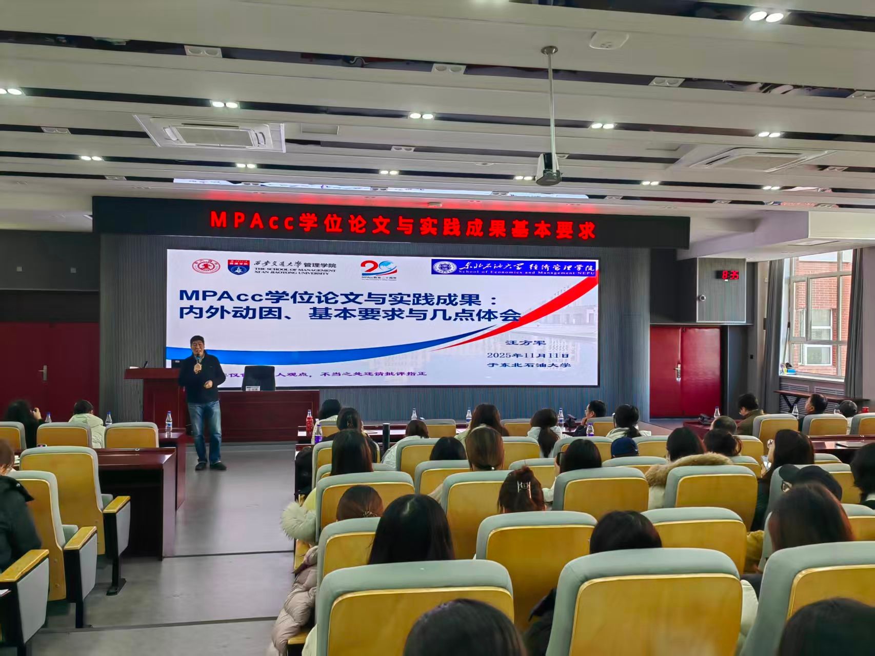 为提高我院MPAcc学位论文质量,2025年11月11日,英国上市公司365在第一教学楼H座211会议室,特邀全国MPAcc教育指导委员会委员、西安交通大学汪方军教授开展了主题为《MPAcc学位论文与实践成果基本要求》的专题讲座。英国上市公司365院长王艳秋及学院百余名师生参会。讲座由专业硕士(MBA/MPAcc)教育中心主任王赵亮主持。