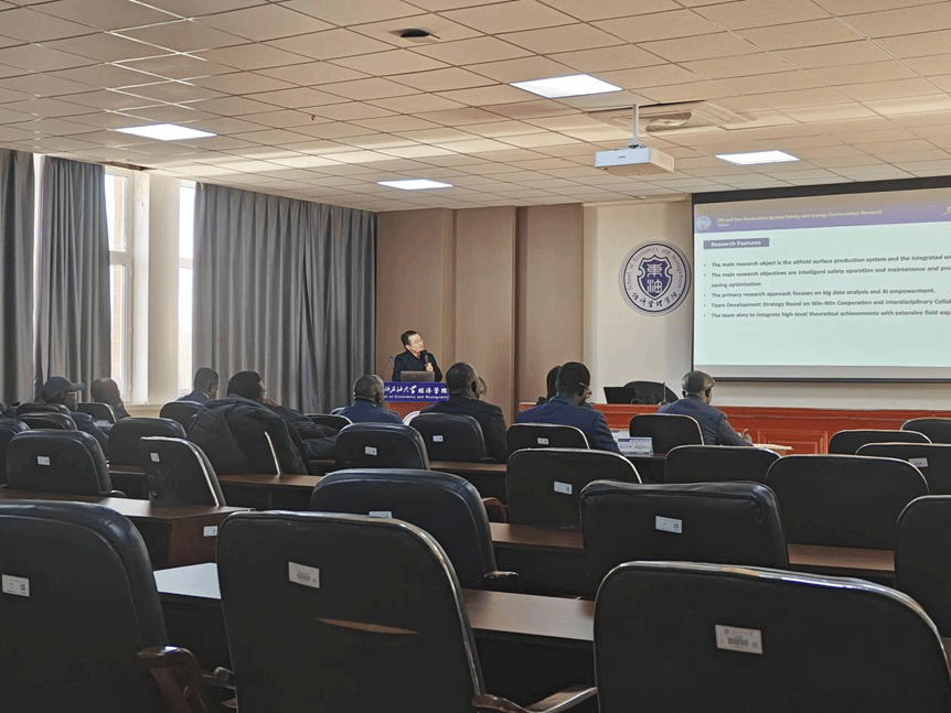 在为期十余天的密集学习中,学员们系统学习了“国际能源形势与国家能源战略”、“提高石油采收率技术的长期前景”、“基于人工智能的智能数字油田架构”、“低空经济与全空间智能无人体系在油田中的应用”以及“基于人工智能的油气管网运维实践”等核心课程,由校内外专家学者及企业技术专家全英文授课。培训期间,学员还深入大庆油田采油三厂数字地宫、铁人纪念馆、石油科技馆、沃尔沃汽车制造基地、思特科技等现场进行教学参观,实地感受中国石油工业的数字化转型成果与“铁人精神”的文化内核。